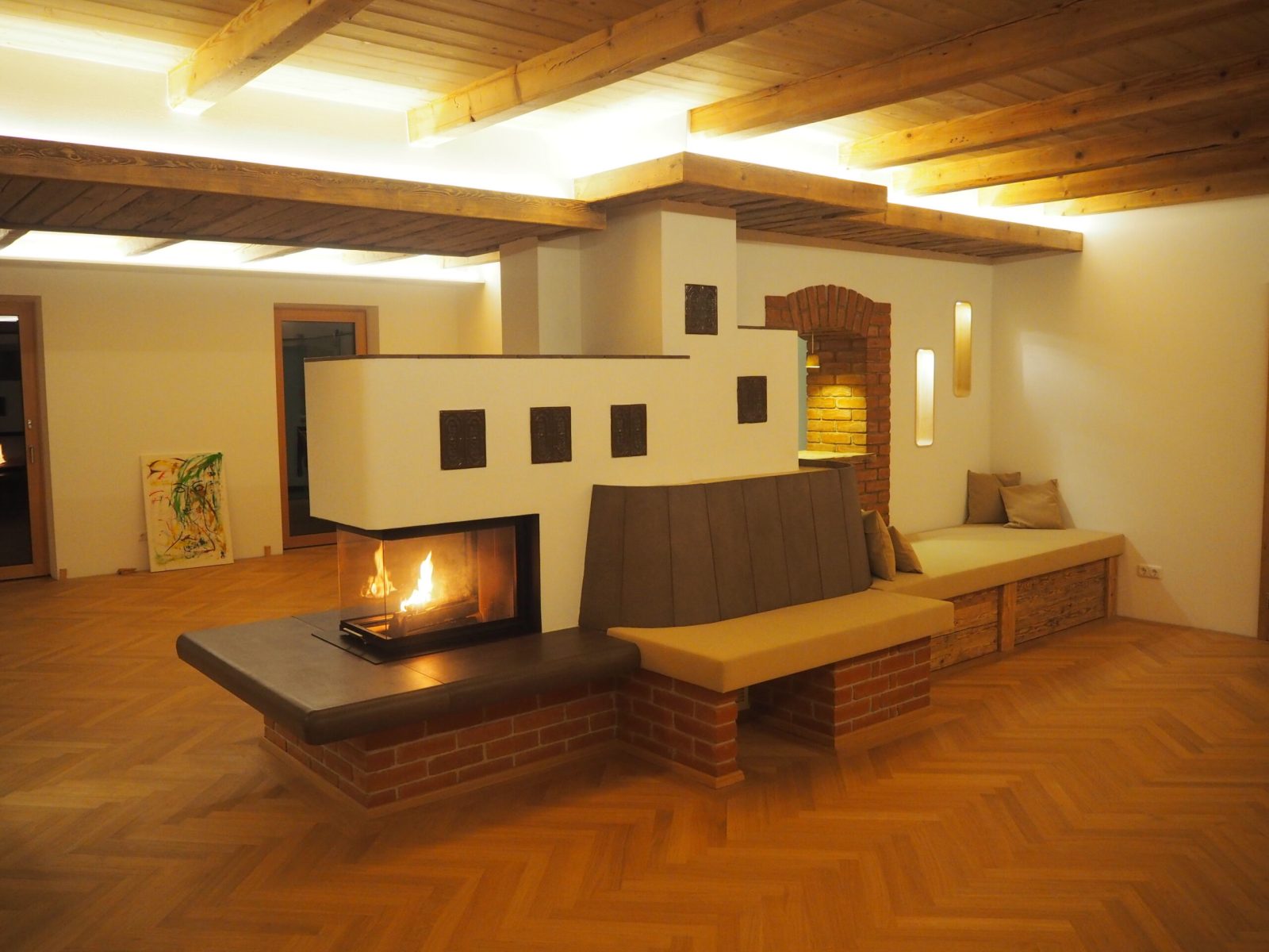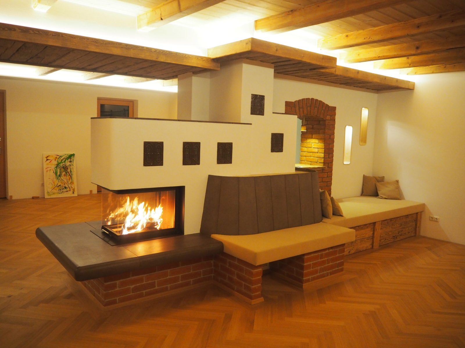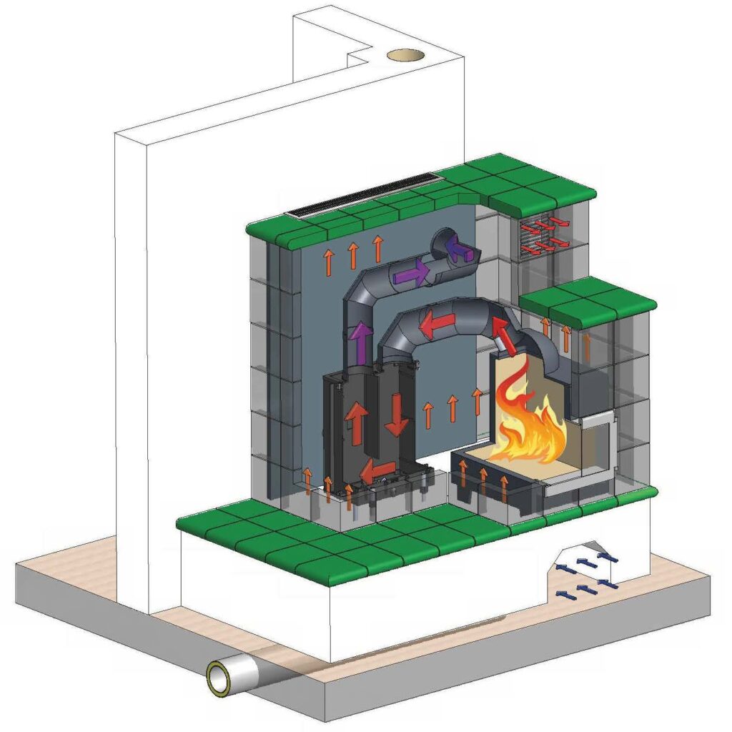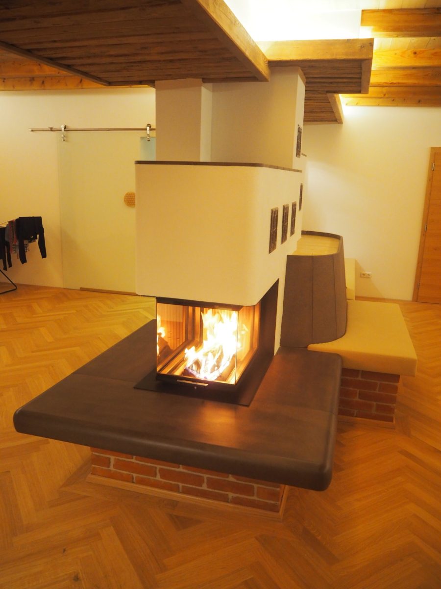 Der Heizkamin speichert die Energie des Feuers 8-12 Stunden und heizt so mit gesunder und wohltuender Strahlungswärme den Raum.